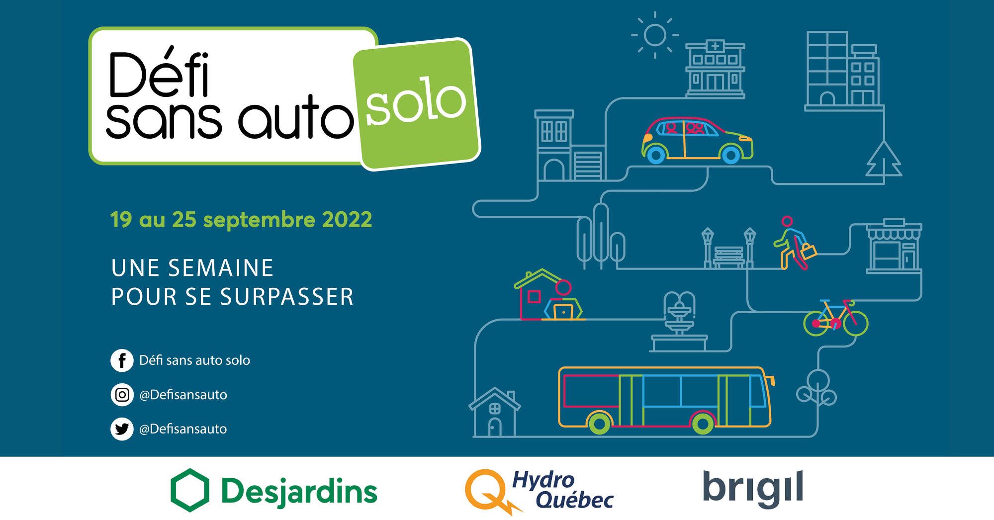 Le Défi sans auto solo est une compétition amicale entre les entreprises et les institutions de toutes les régions de la province. Que ce soit par le transport actif, le transport collectif ou même le télétravail, le Défi est l'occasion pour les personnes participantes de découvrir la mobilité durable ; ou de devenir ambassadeur de leur mode de transport durable favori auprès de leurs collègues.
