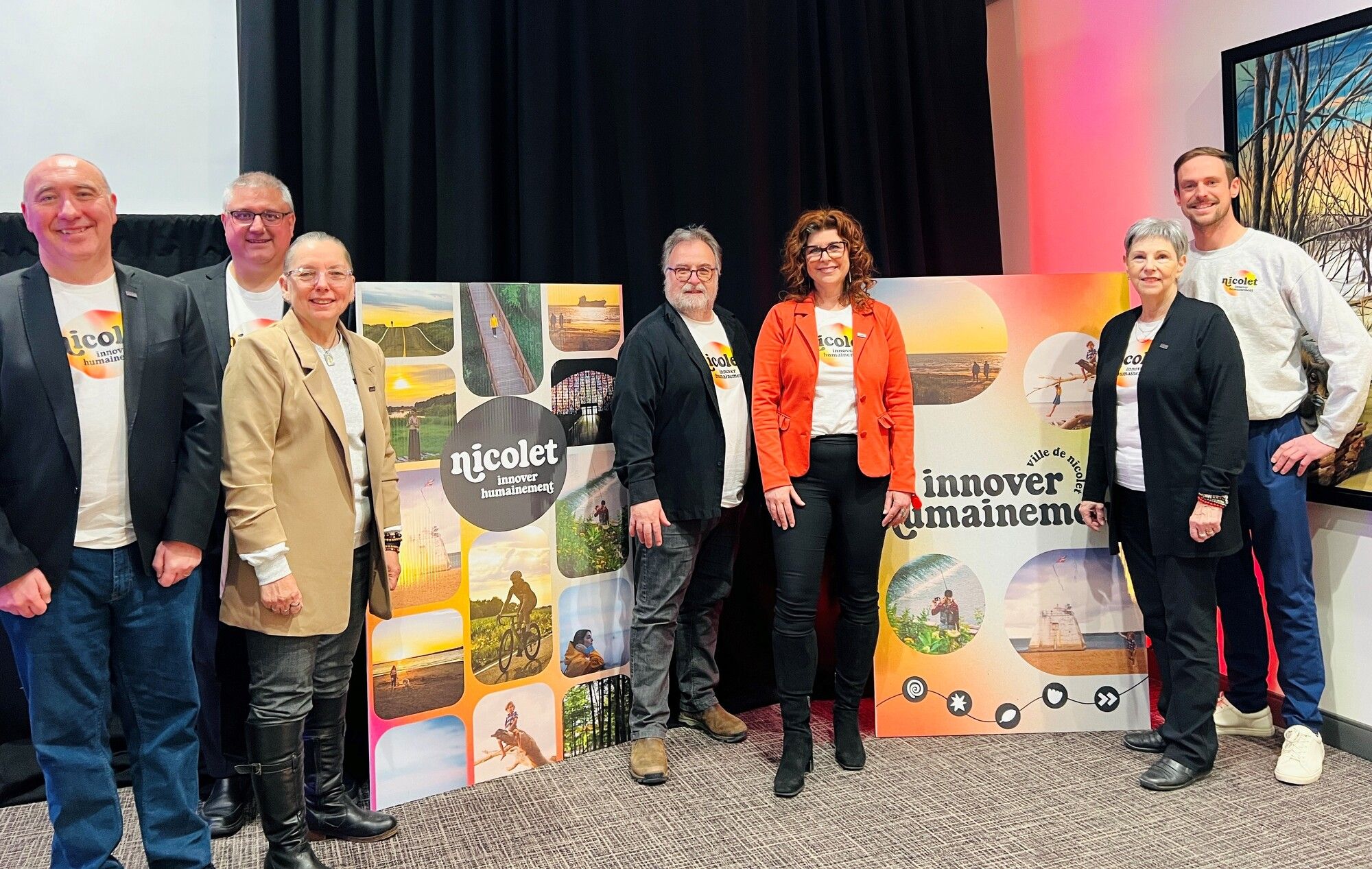 En compagnie de ses collègues du conseil municipal, la mairesse de Nicolet, Geneviève Dubois, a dévoilé avec fierté aujourd'hui le tout nouvel axe graphique de la Ville : Nicolet innover humainement. En conférence de presse, la mairesse a expliqué qu'à l'aube de la nouvelle planification stratégique de la Ville de Nicolet qui s'étalera sur cinq années, la municipalité souhaite un positionnement plus représentatif et actuel de ce qu'elle est. Ainsi, on décrit souvent Nicolet comme une ville novatrice, qui fait bouger les choses autrement, tout en gardant l'humain au c?ur de ses décisions.