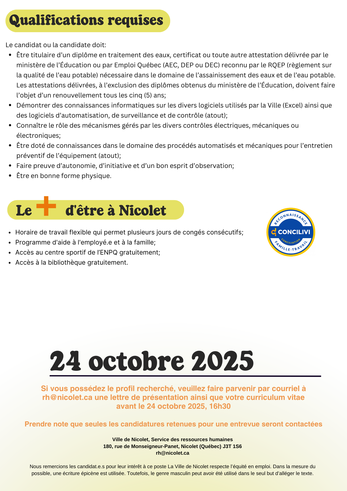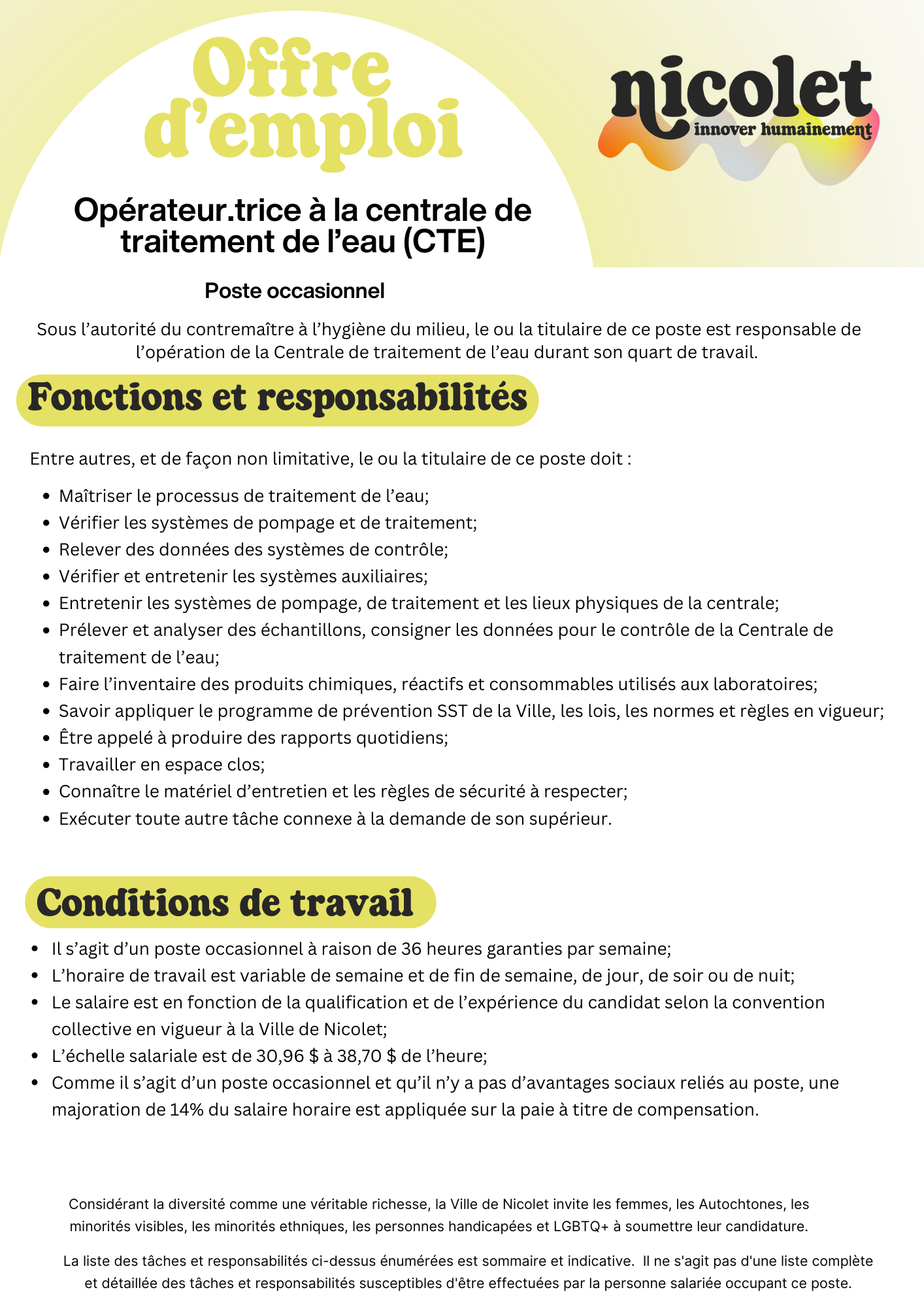Opérateur(trice) - Centrale de traitement d'eau (occasionnel)