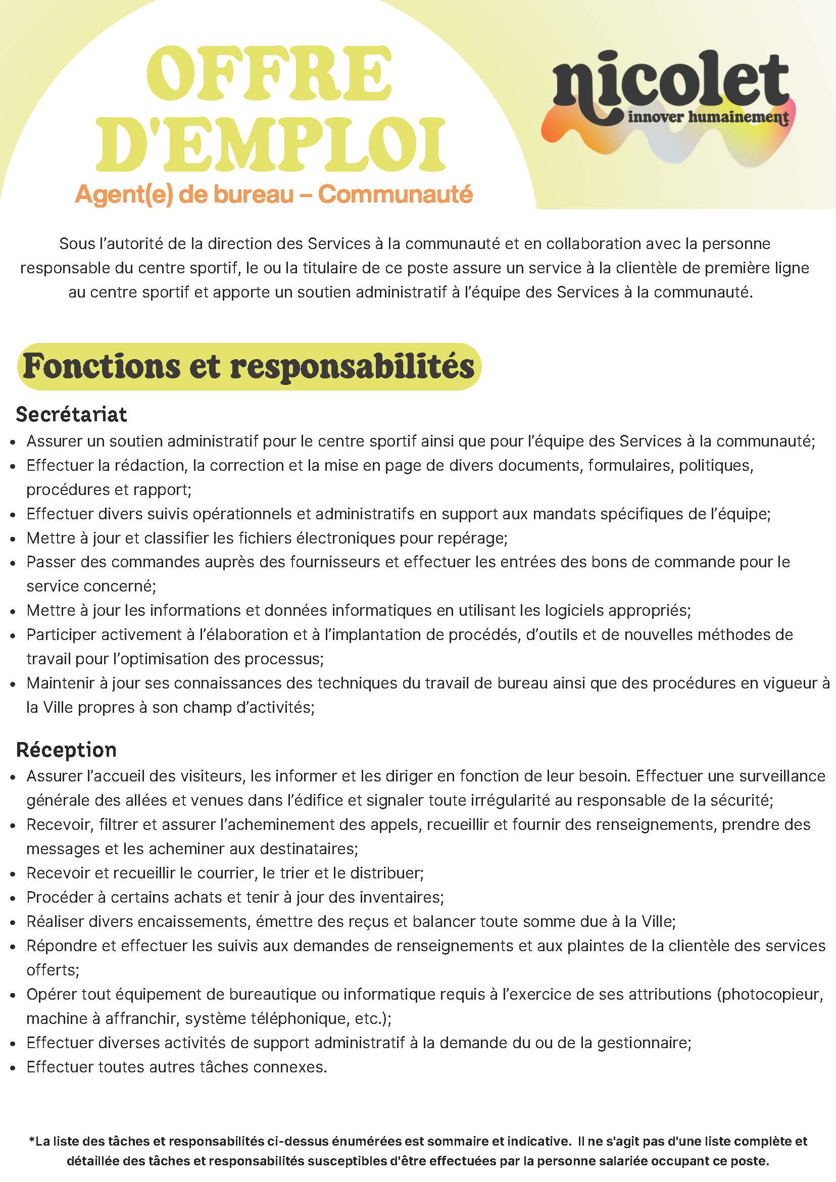 Agent(e) de bureau - Communauté