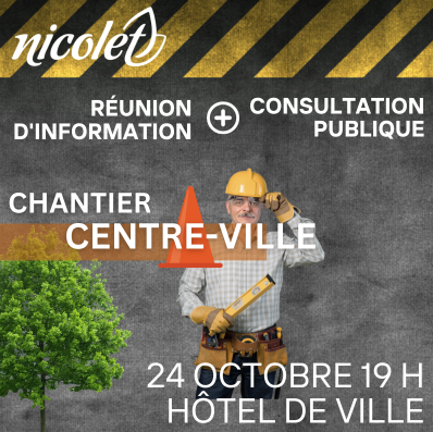 Ce mardi 24 octobre, 19 h à l'hôtel de ville, inscrivez-vous communication@nicolet.ca ou 819 293-6901 poste 1130.