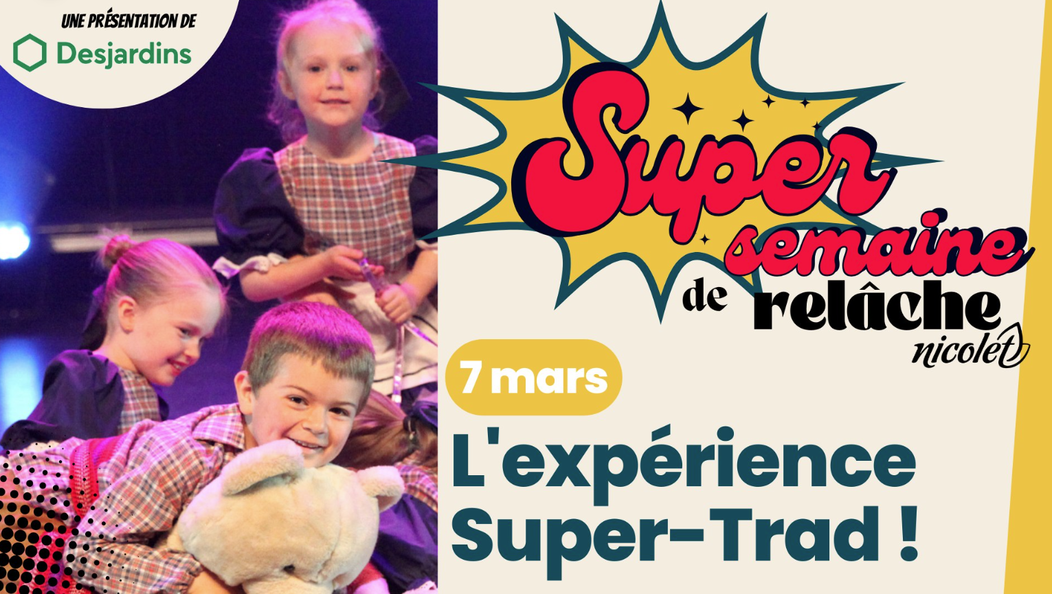 L'expérience Super-Trad est un atelier d'initiation aux arts de la veillée traditionnelle comme la danse, l'art de jouer de la cuillère et aussi la gigue.