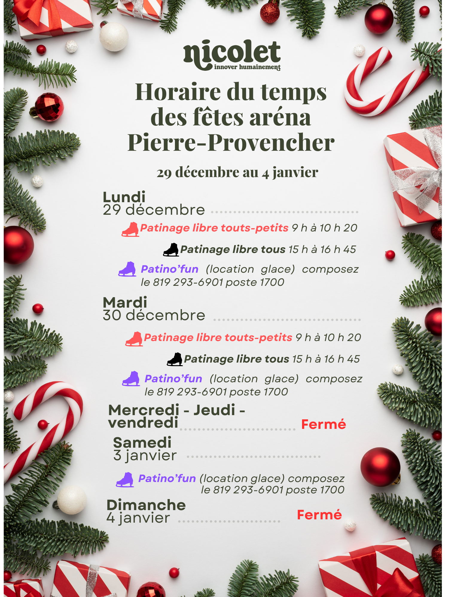 Horaire du temps des Fêtes
